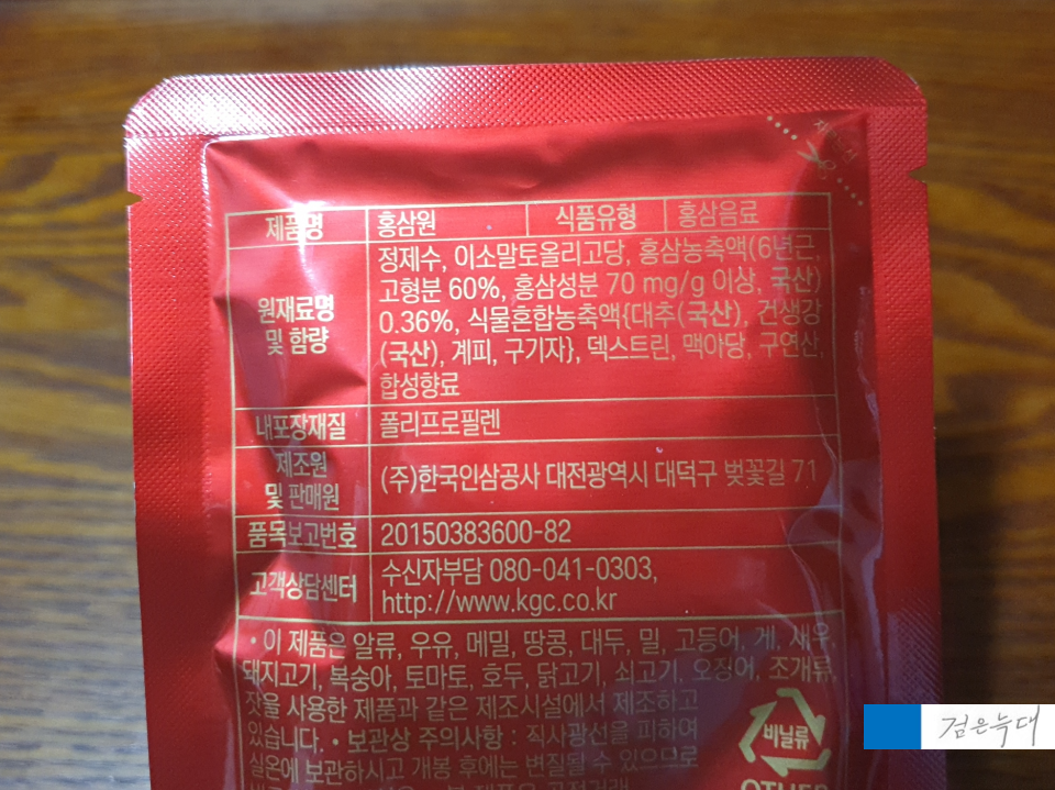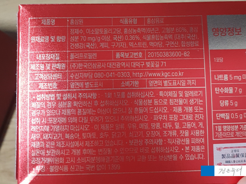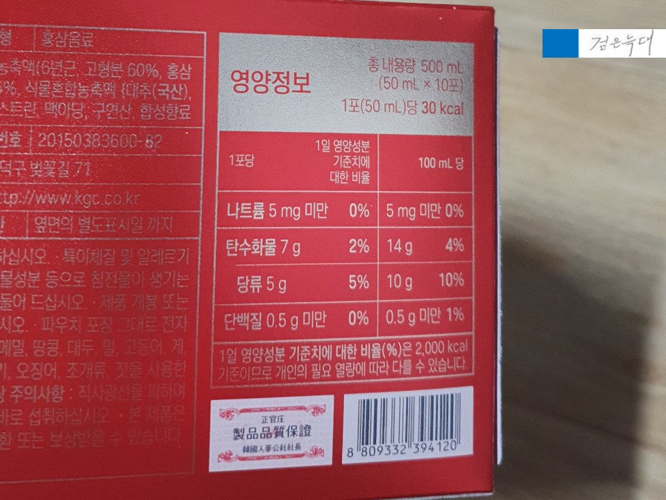 정관장 홍삼원은 홍삼농축액이 0.36%