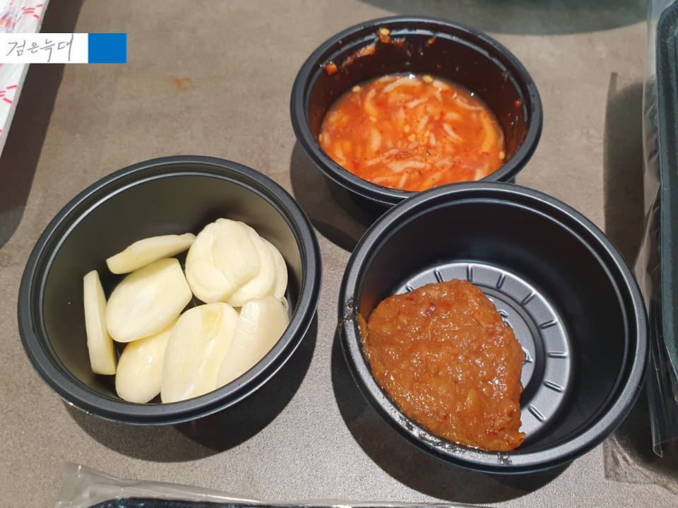 새우젓, 쌈장, 마늘이 따라왔습니다