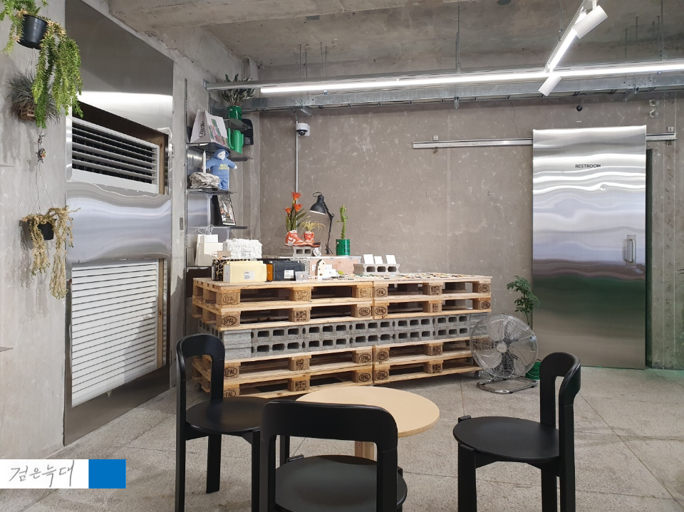 ▷ 실내는 빈티지 목재 메탈 인테리어