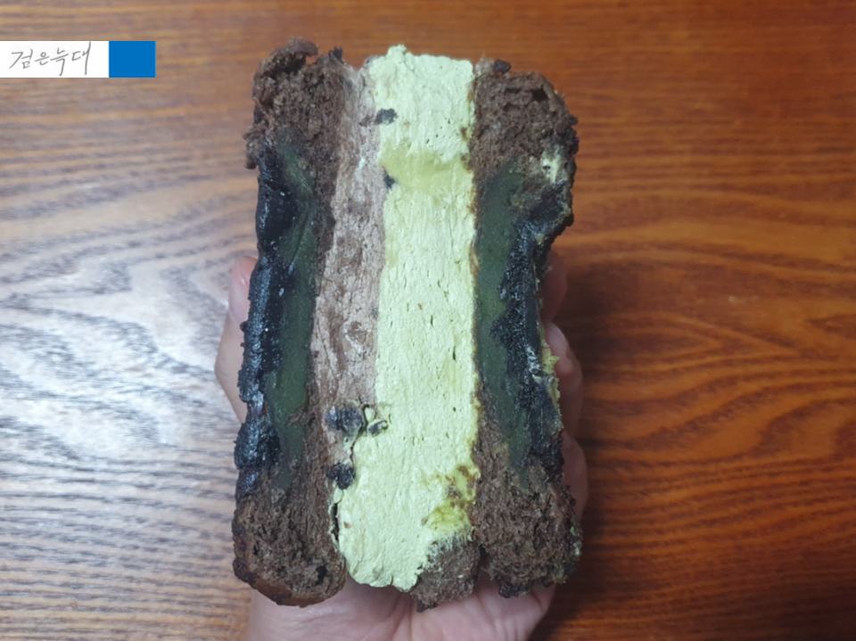 ▷ 맘모스 빵을 반으로 잘라서 들어감