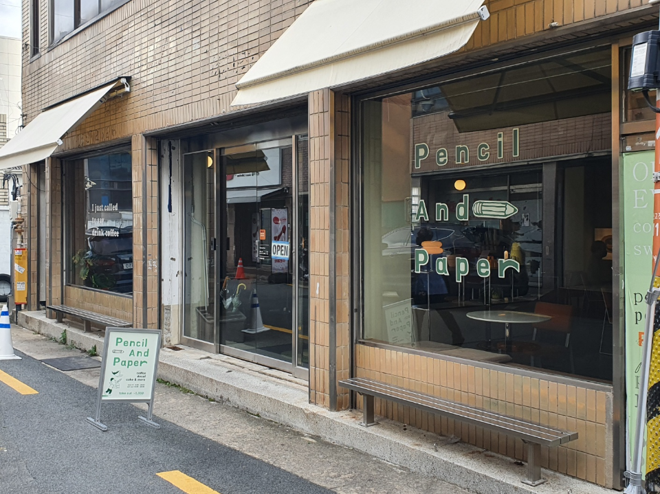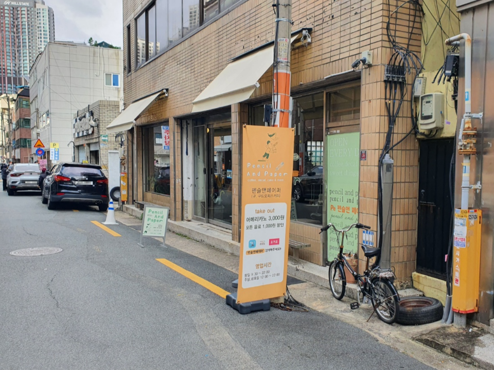 펜슬앤페이퍼 카페 입간판이 보입니다
