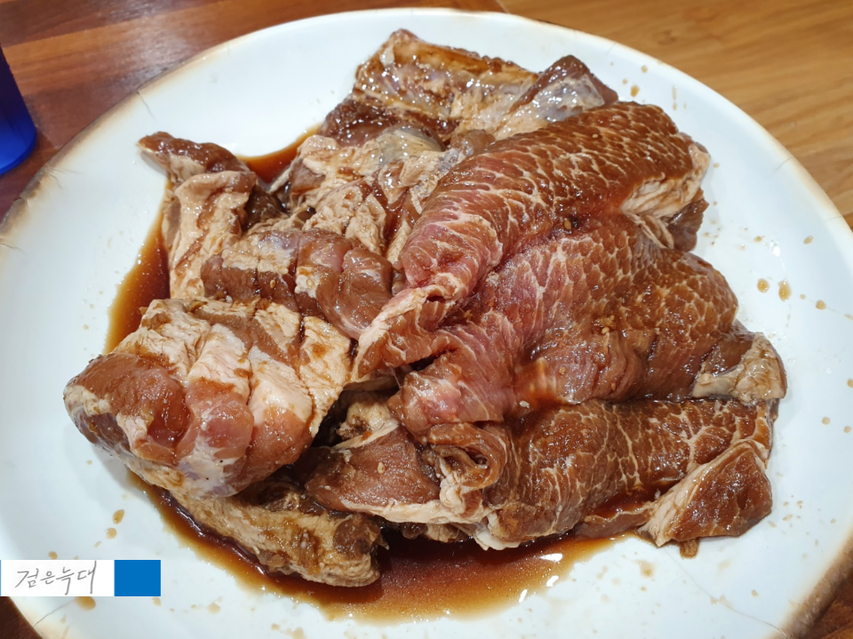 ▷ 양념갈비는 국내산 독일산 섞어 씀