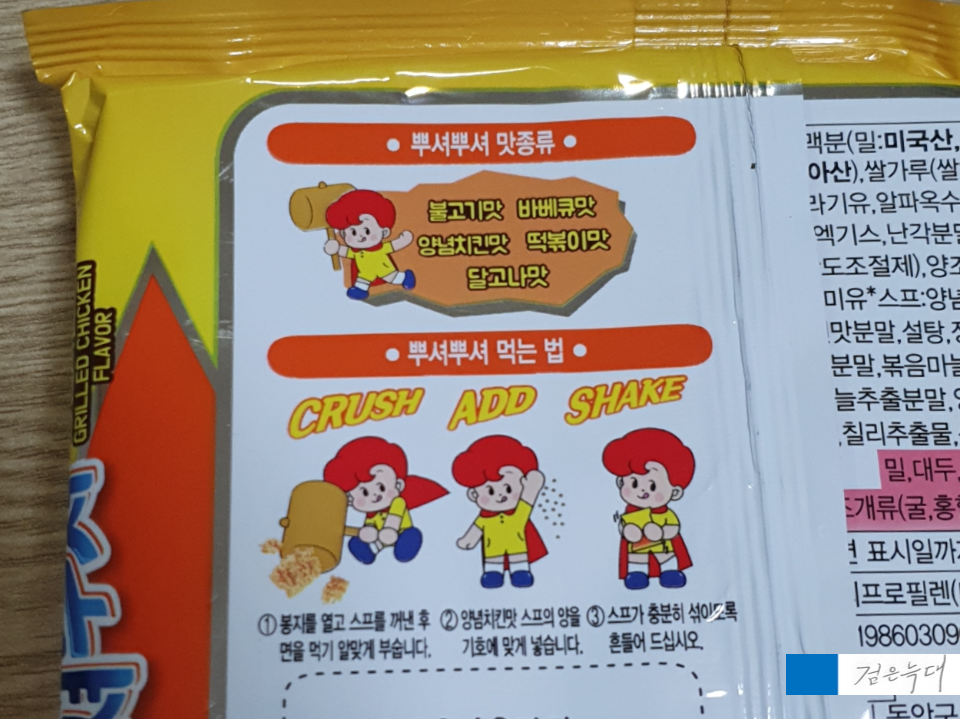 뿌셔뿌셔는 라면 기반의 과자다 보니