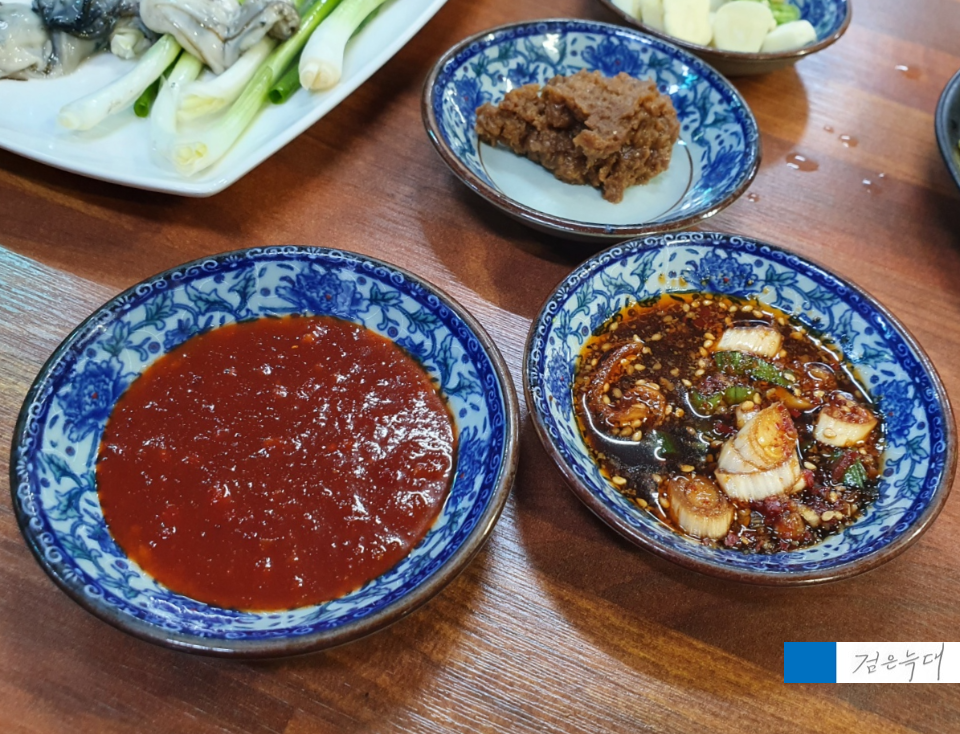 초장과 간장 양념장이 나오는데