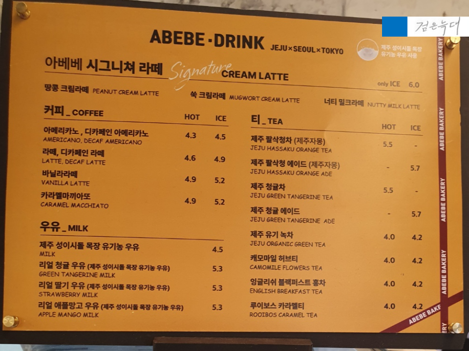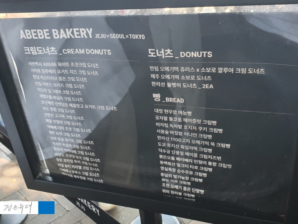 아베베 베이커리 서울의 메뉴입니다