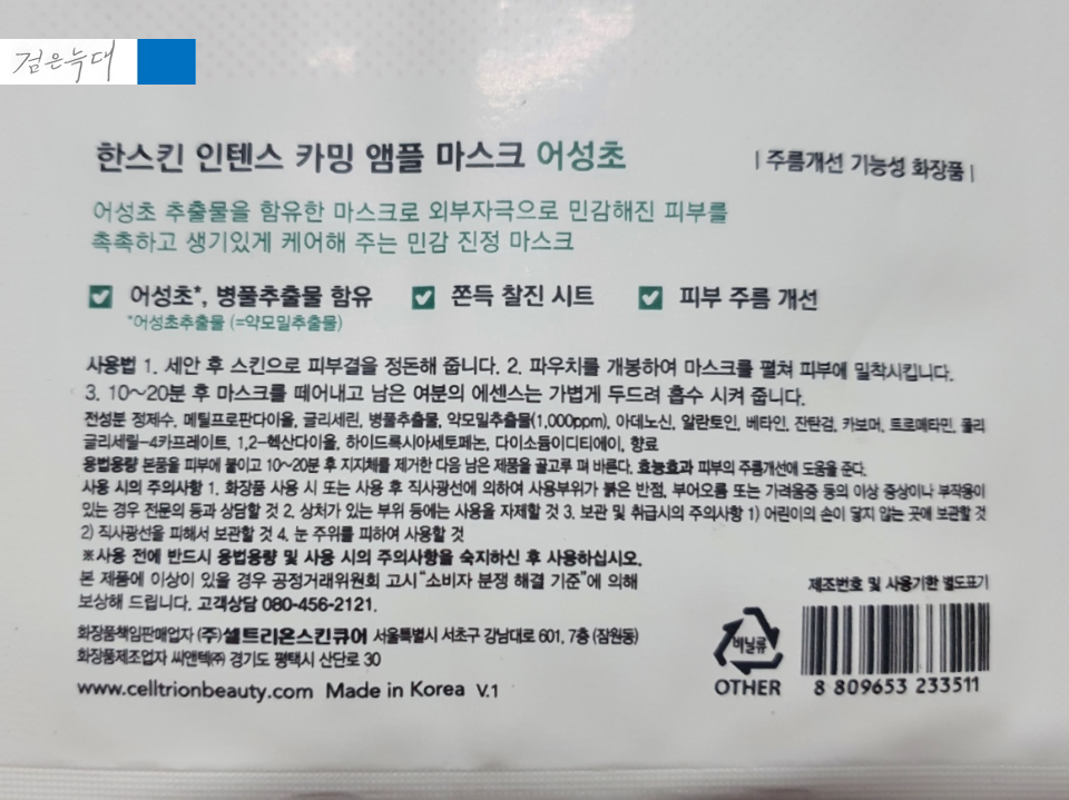 한스킨 인텐스 카밍 앰플 마스크 어성초는