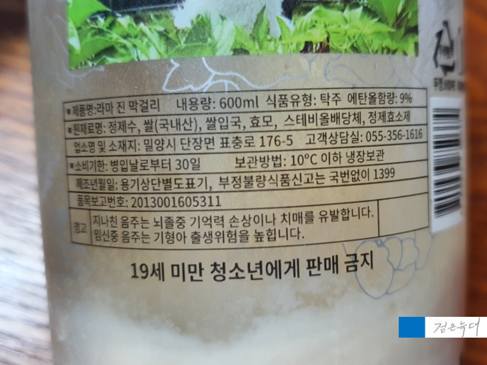 라마진막걸리의 라벨입니다