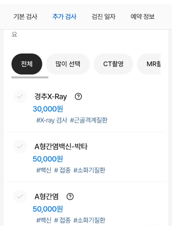 검사 항목은 비용을 지불하고