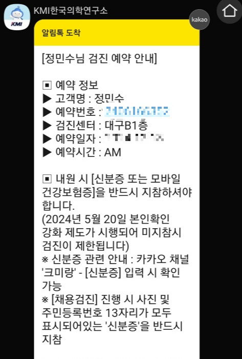 KMI한국의학연구소 대구검진센터에서