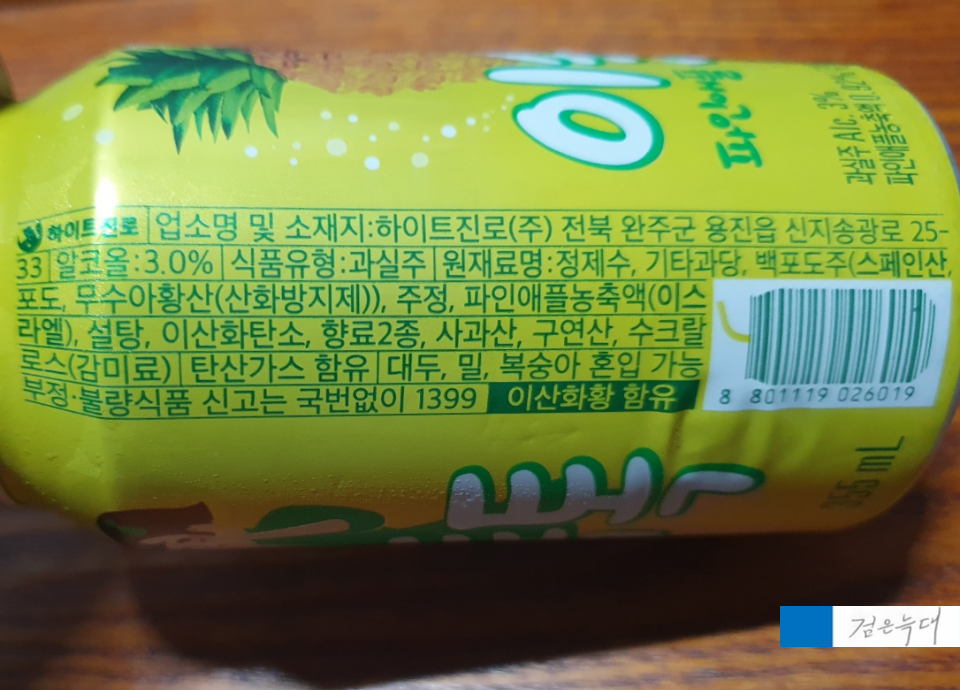 이슬톡톡 파인애플 알콜도수는 3%입니다