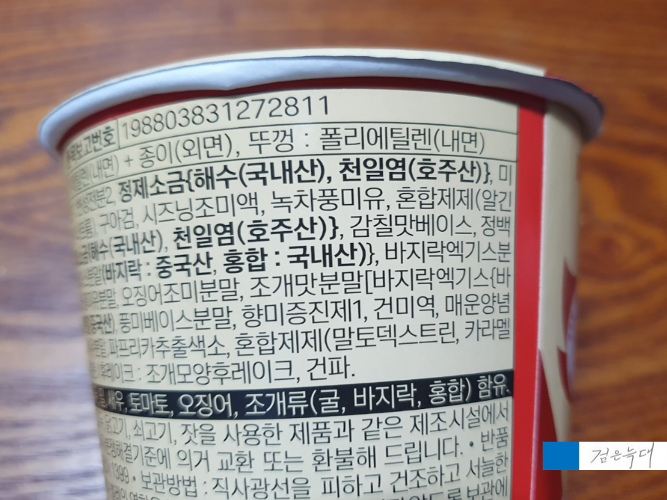 맵탱 컵 마늘조개라면 원재로입니다