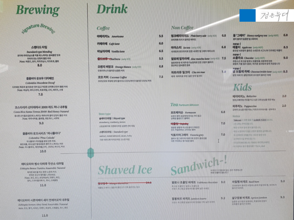 스테드 메뉴판입니다