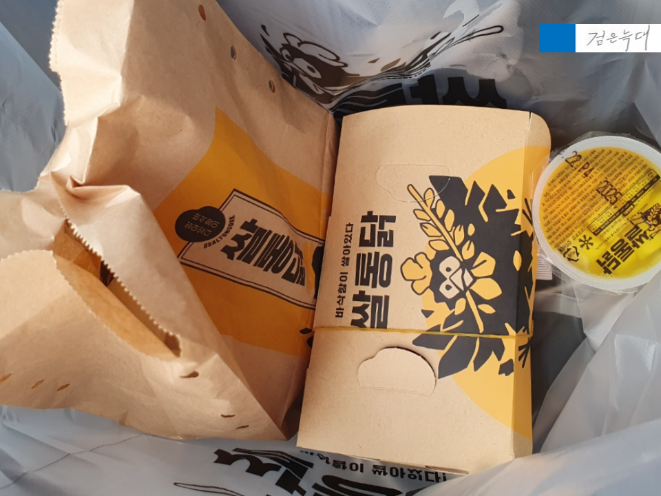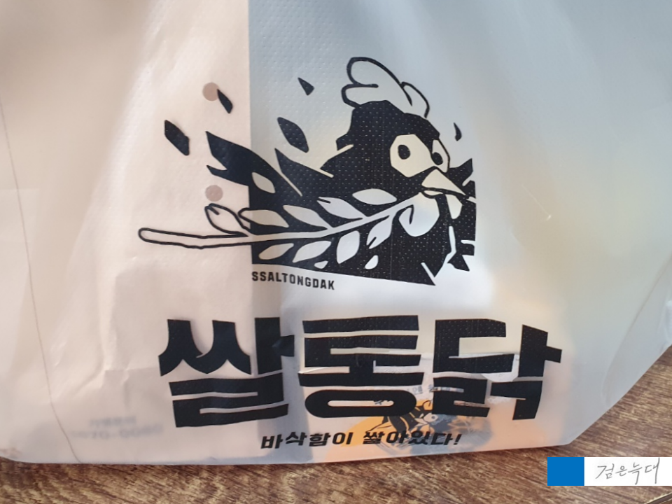 시장통닭 감성으로 종이 봉지에