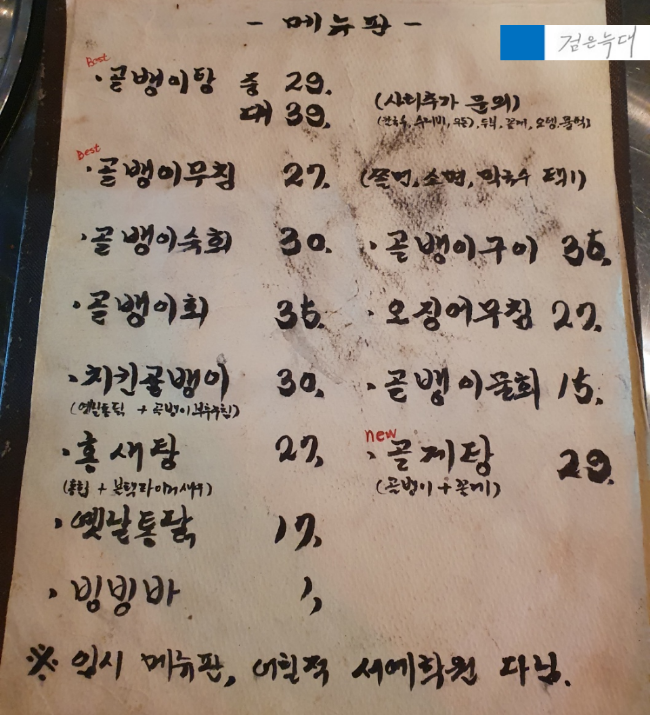 황골뱅이 삼덕점은 당일입고한