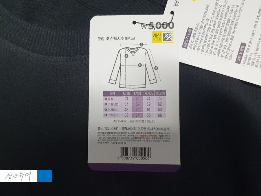 상품 택에는 사이즈가 적혀 있습니다