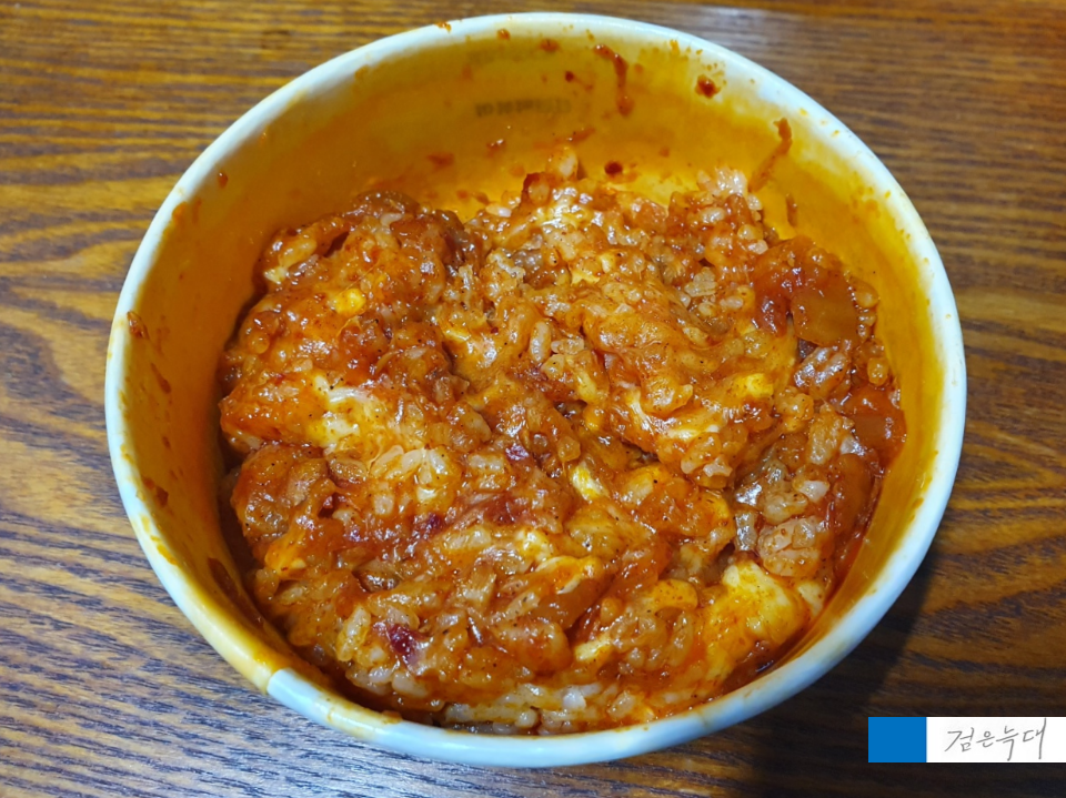 신전떡볶이 소스로 볶은 볶음밥입니다