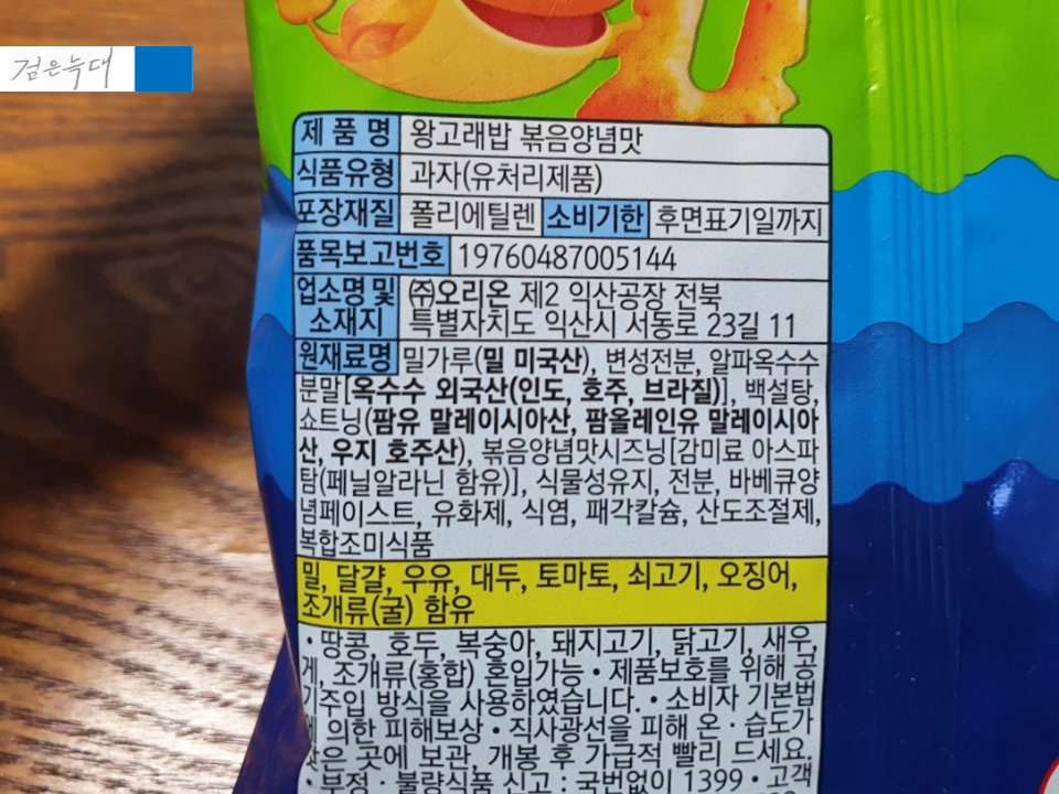 왕고래밥 볶음양념맛 원재료입니다