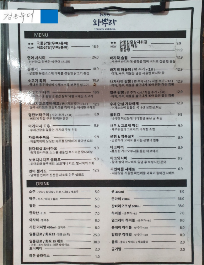 <봉리단길술집> 모던한 분위기의 캐주얼 이자카야 '와뿌라'