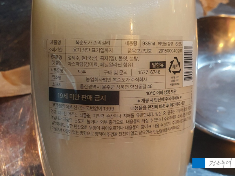 복순도가손막걸리6.5도의 모습