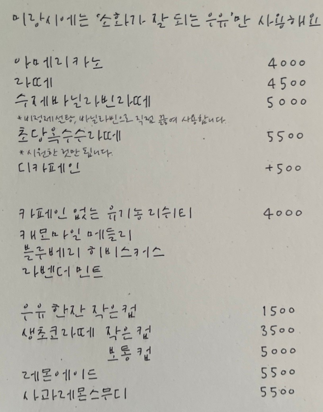 ▷ 소화잘되는우유 사용 라떼