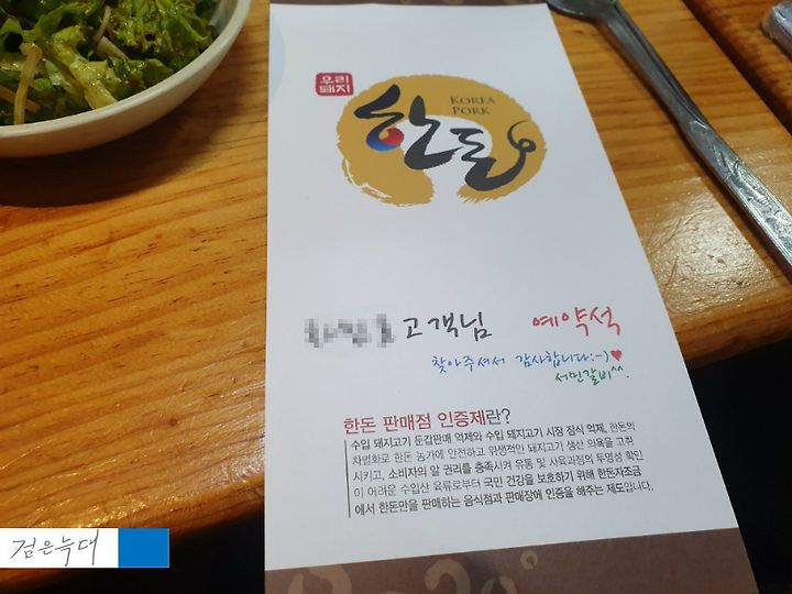 서민갈비는 한돈 인증 음식점이라고 하네요