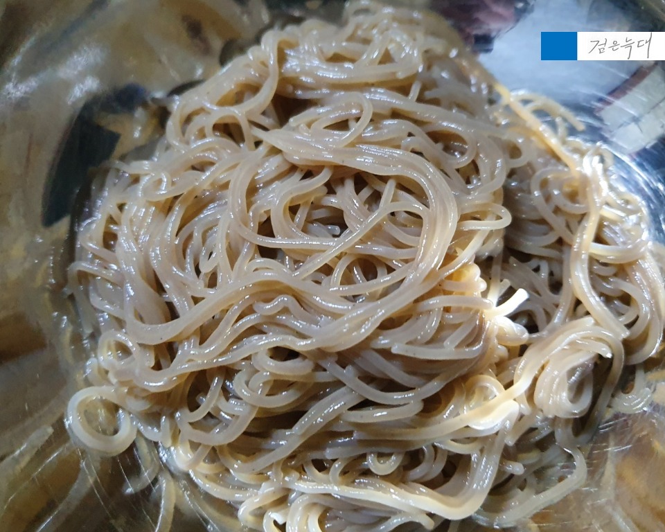 끓인 냉면 사리는 찬물에