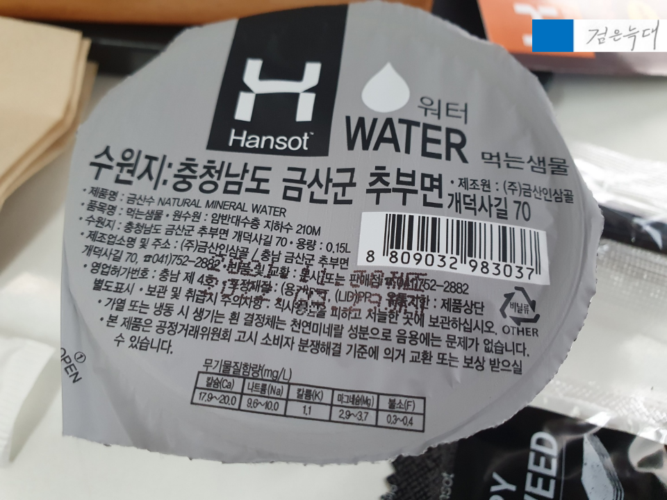 전용 컵 생수 하나가 제공됩니다