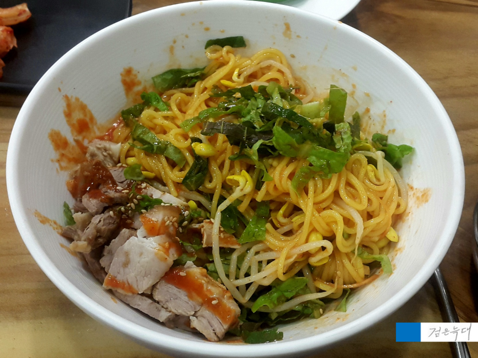 메뉴는 고기국수와 비빔국수입니다