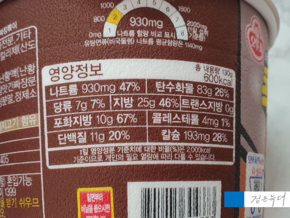 요즘 오뚜기 컵라면은