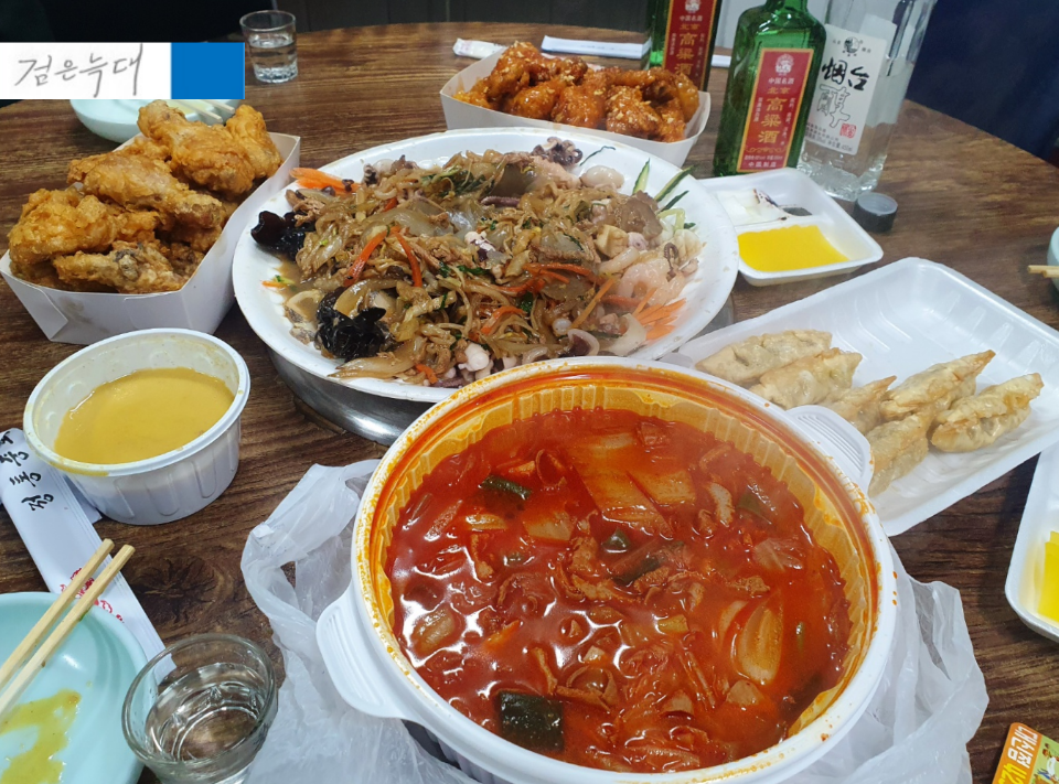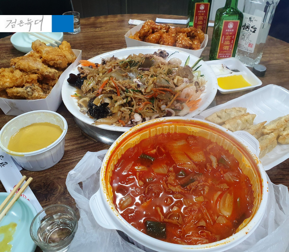 <자투리조각모음.14> 연말 파티에 배달로 먹어본 메뉴들 모음 (호식이두마리치킨, 천안문반점, 정하용선산곱창)'