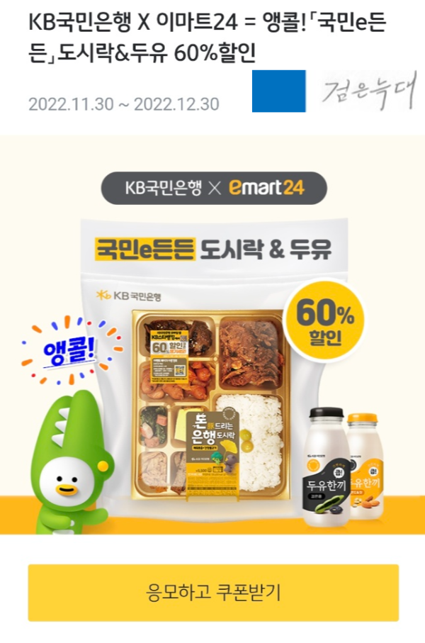 <편의점도시락#27> 국민은행과 이마트24가 콜라보한 편의점도시락 '돈드리는은행도시락 바싹불고기' (feat. 국민은행앱 제휴혜택존 사용방법)