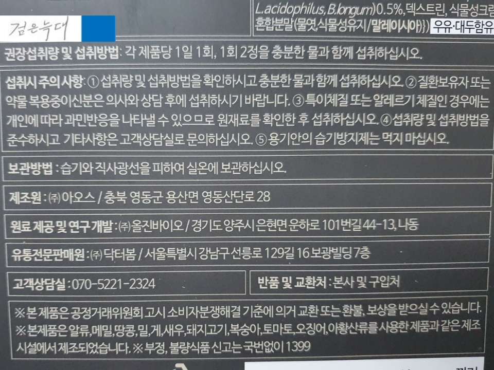 원재료난 섭취방법이 적혀 있습니다