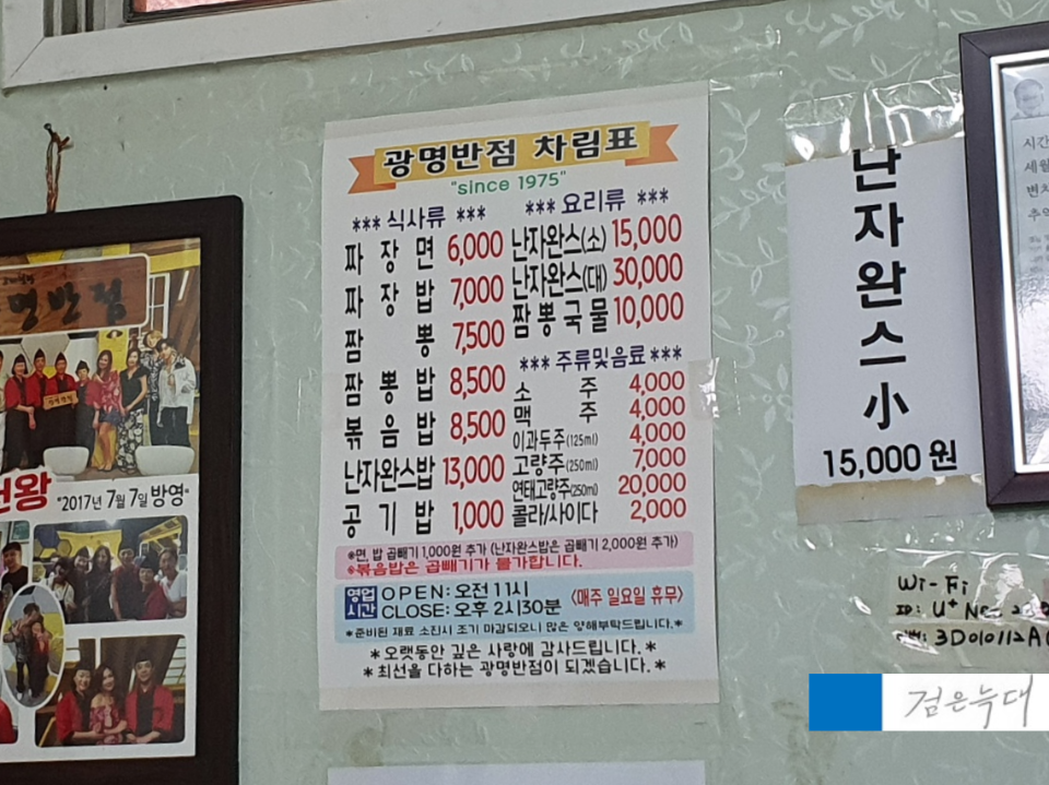 광명반점의 메뉴판입니다