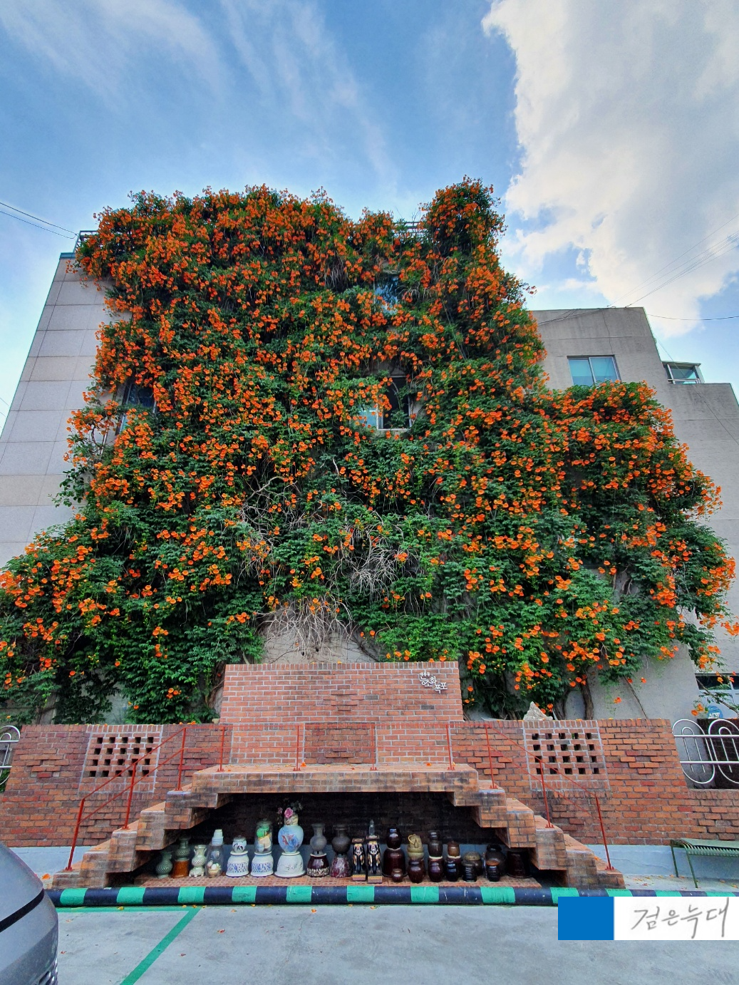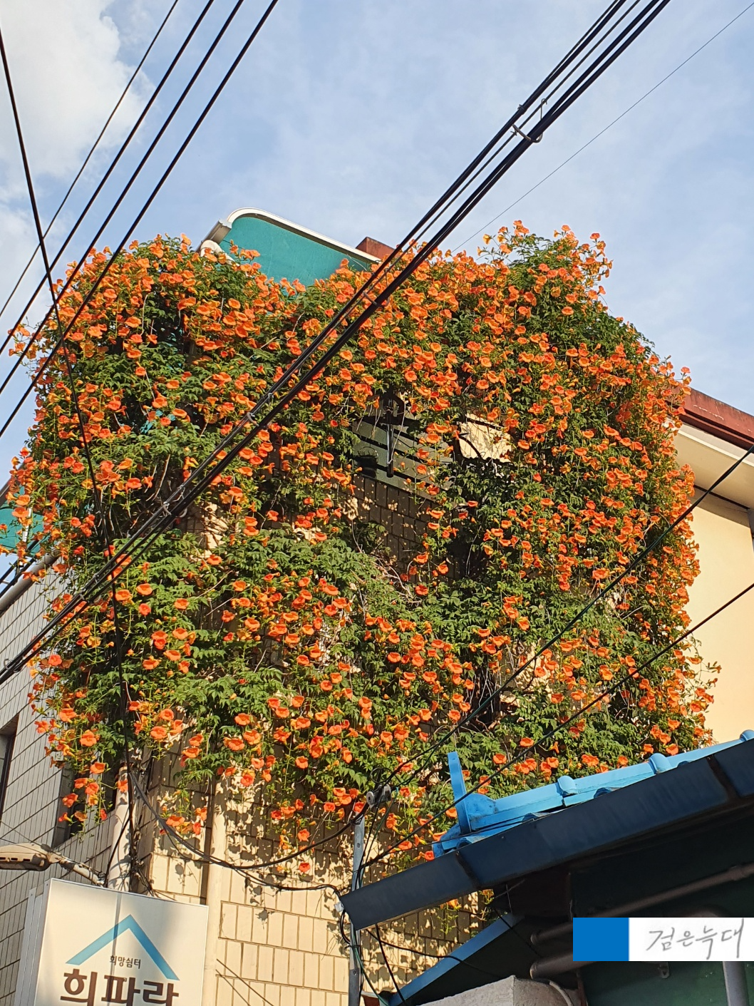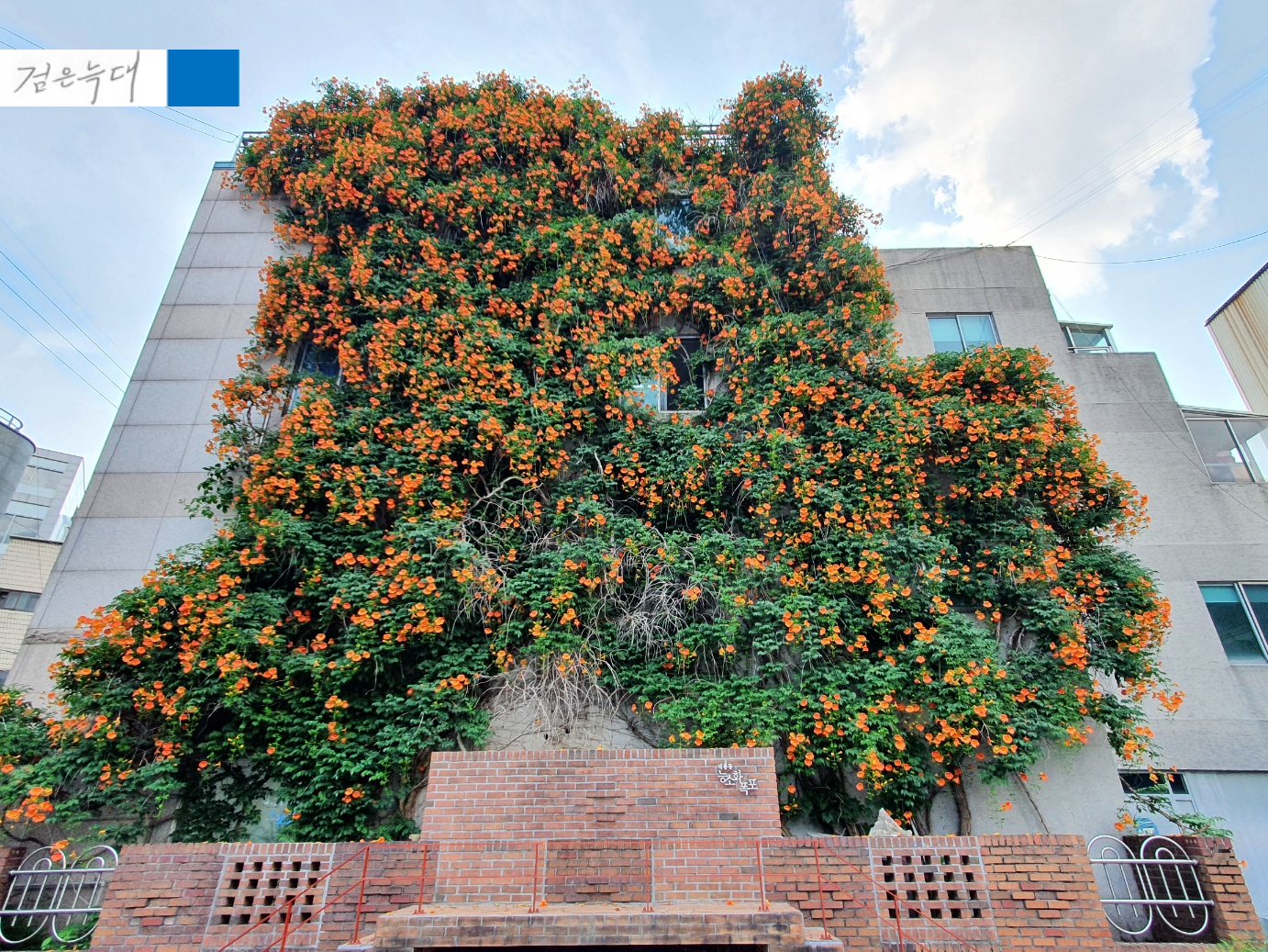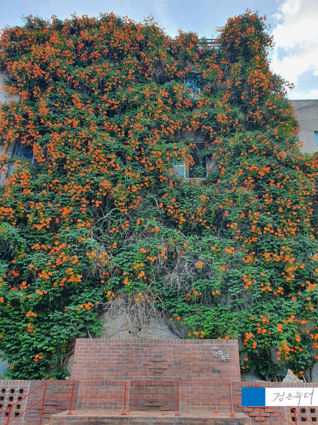 건물 벽면 전체를 타고 피어난