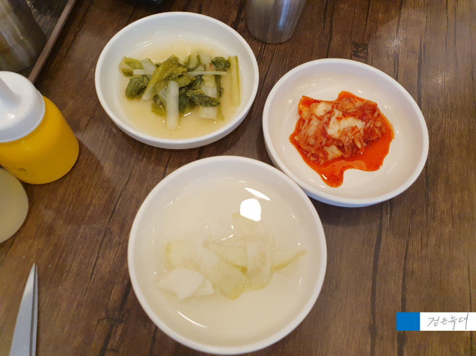 반찬은 김치와 물김치, 무절임입니다