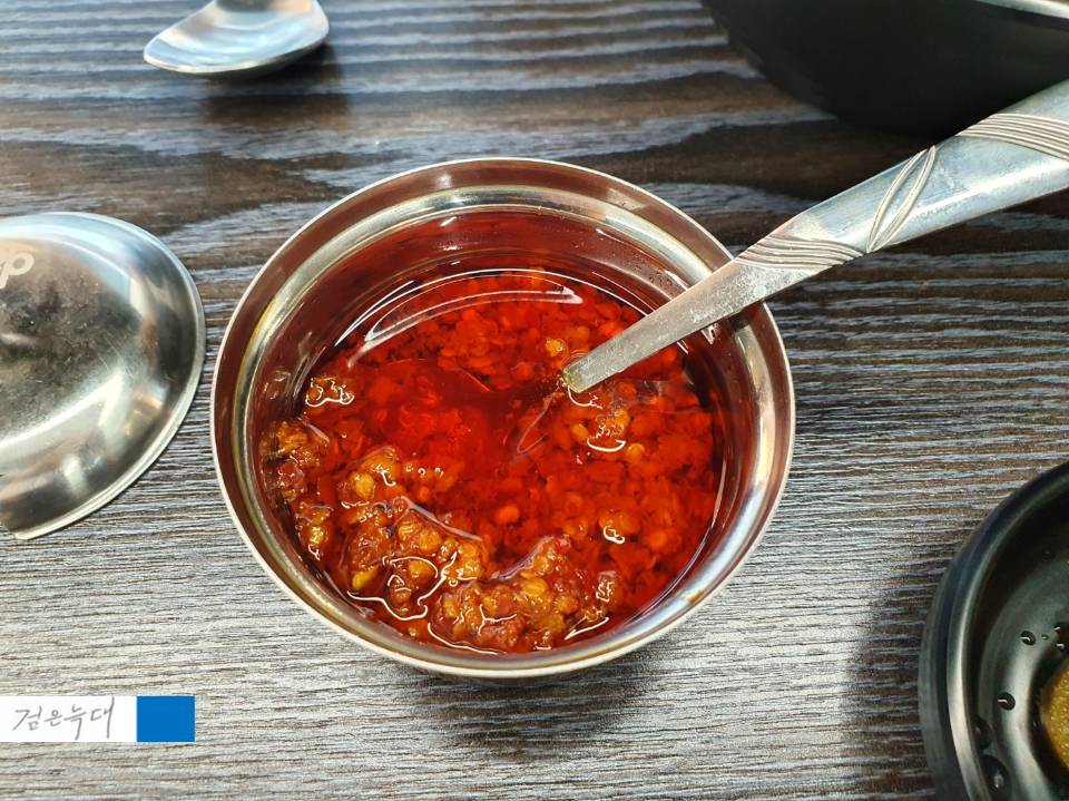 딴 소스를 먹거나 고추기름