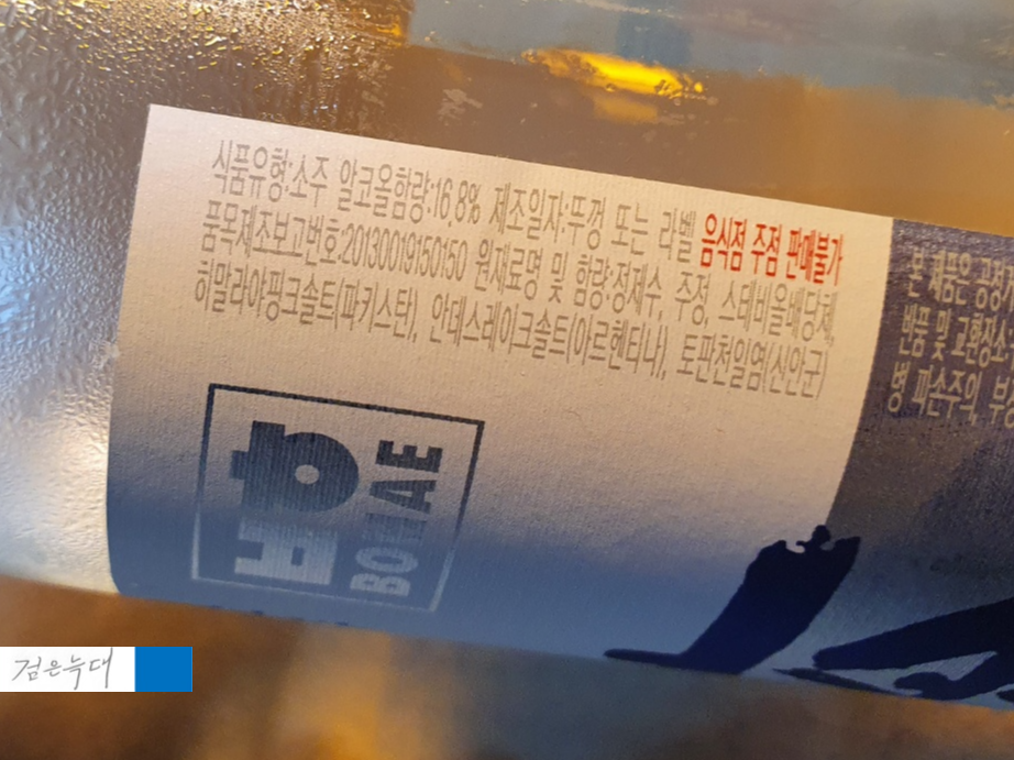 뒷 편에는 보해마크 라벨이 붙어 있습니다
