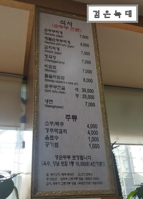 순두부찌개 말고도 몇가지 메뉴들이 잇지만