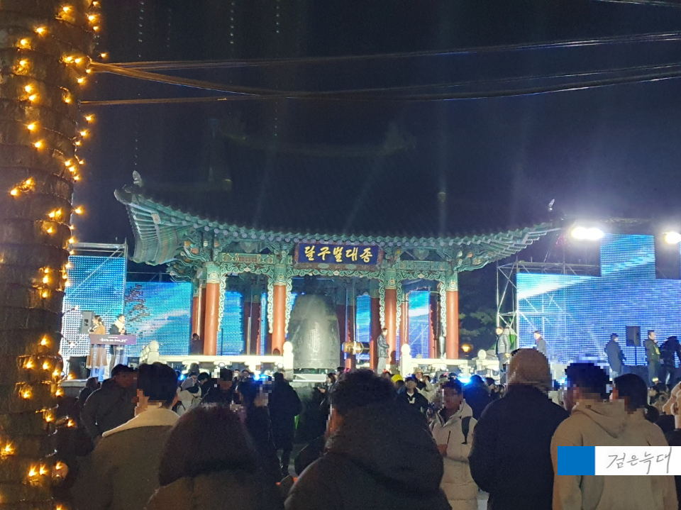 코로나로 인해 대구에서도 새해맞이 타종행사가 3년 만에 국채보상운동 기념공원에서 개최 되었습니다 여러모로 말도 많고 탈도 많아서 어서 지나가라 싶었던 사람도 있고 다가온 새로운 2023년