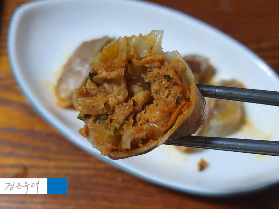 맛있는 김치만두를 하나 가지고 왔습니다