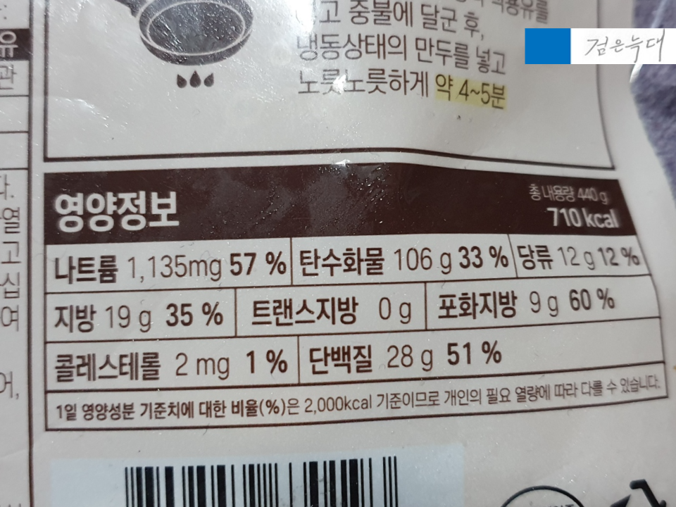 중량은 440g 열량은 710kcal입니다
