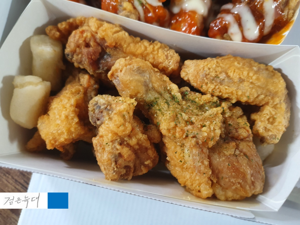 치킨과 함께 떡도 몇 개가