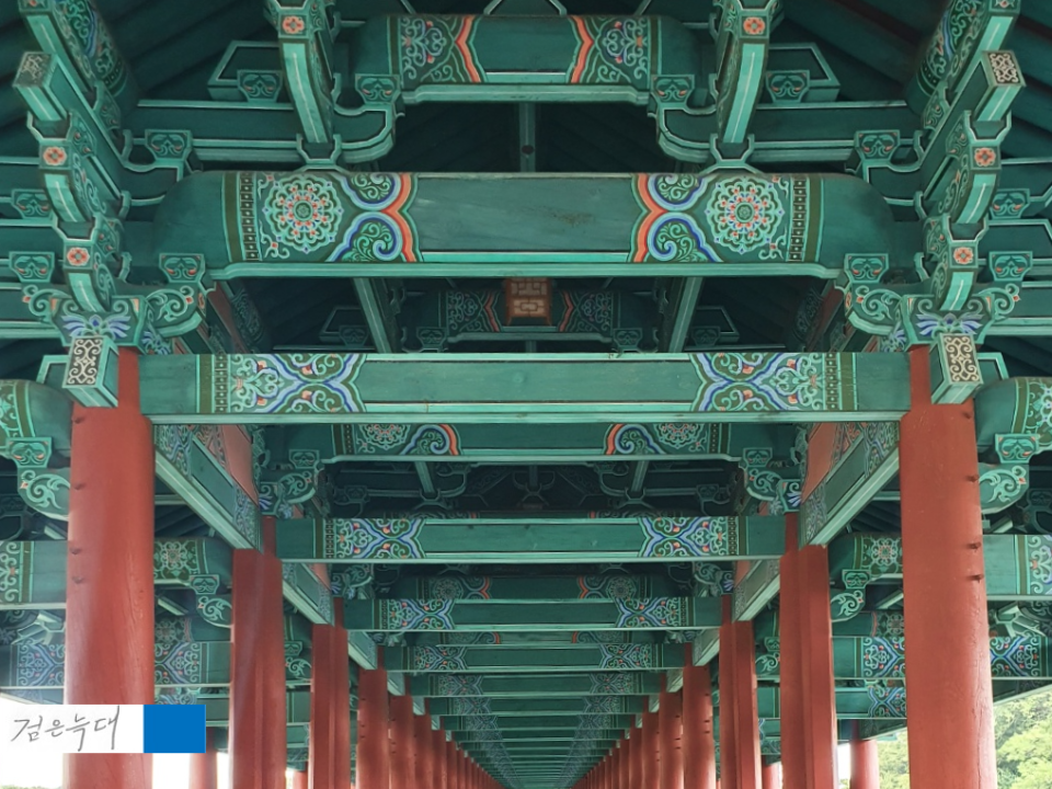 꾸며진 단청과 대들보 기둥들이