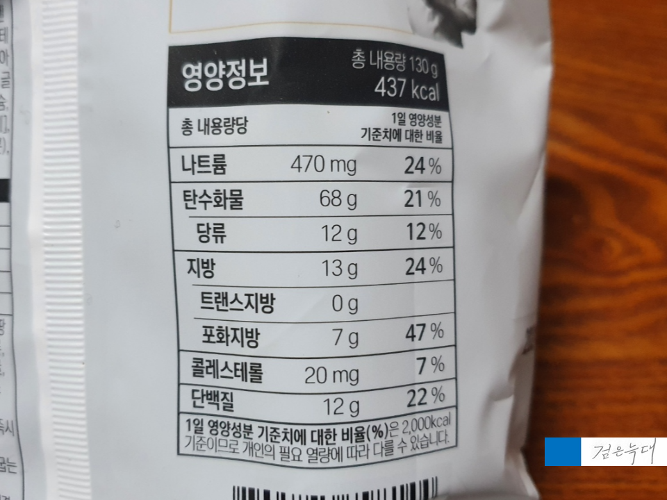 중량은 130g 열량은 437kcal입니다