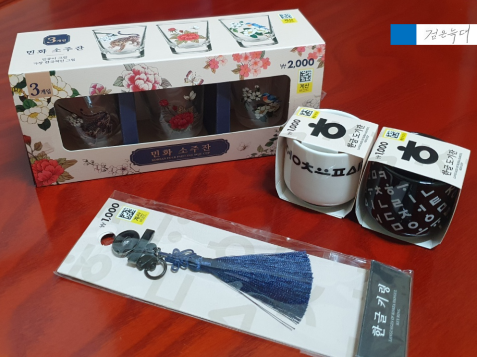 <다이소제품리뷰> 저렴하고 예쁜 '다이소 한글 민화 시리즈' (민화소주잔, 한글도기잔, 한글키링)
