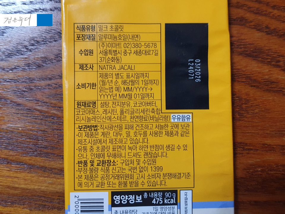 노브랜드밀크초콜렛의 라벨을 보면