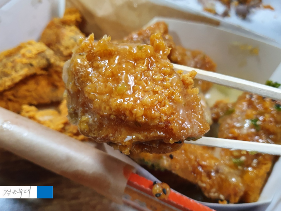 ▷ 튀김옷에서 살코기까지 매콤한 맛