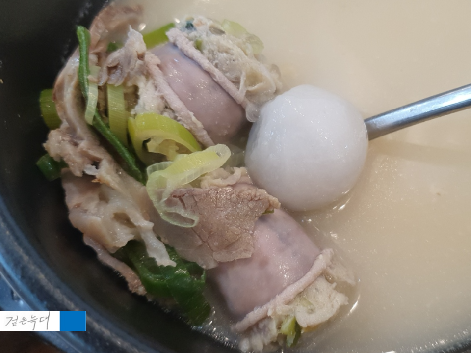 국물에는 일반 돼지국밥 만큼은 아니지만