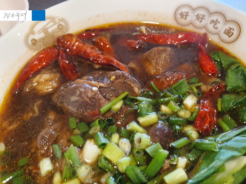 스파이시우육면의 국물은 얼큰하니