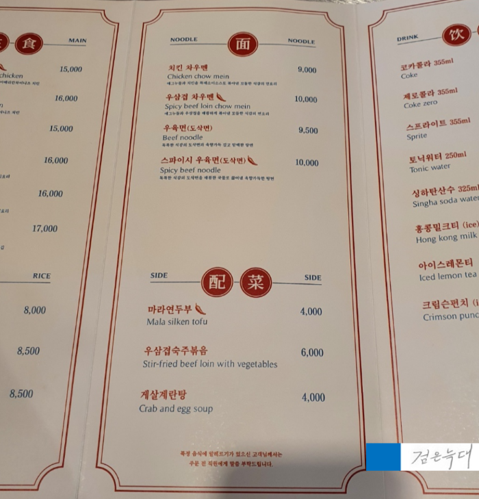 메뉴 참고 할 때 같이 보면 더욱 좋습니다